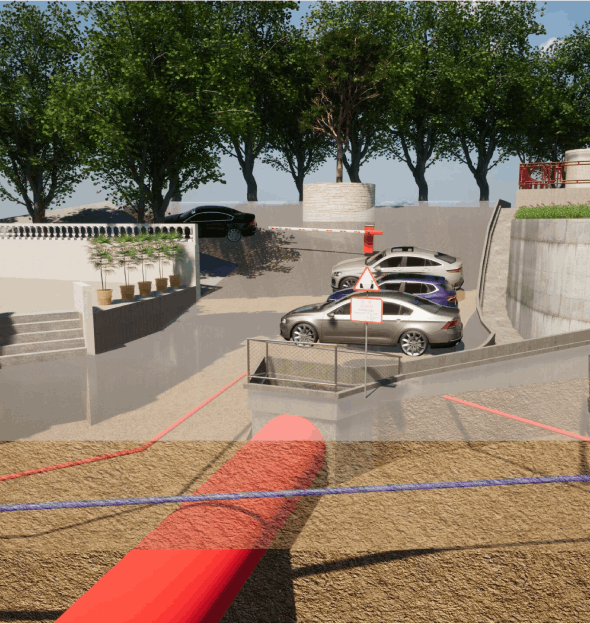 - Simulating water flow: Models replicate how water, both from rainfall-runoff on surfaces and from within pipe networks, behaves under different conditions.